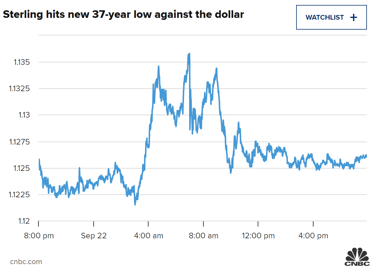 The pound fell to a fresh 37-year low against the dollar below $1.103 in the hours after the announcement, while investors ditched U.K. government bonds and the FTSE 100 fell to its lowest level since March. Johnson said markets appeared “spooked” by the scale of the “fiscal giveaway.”